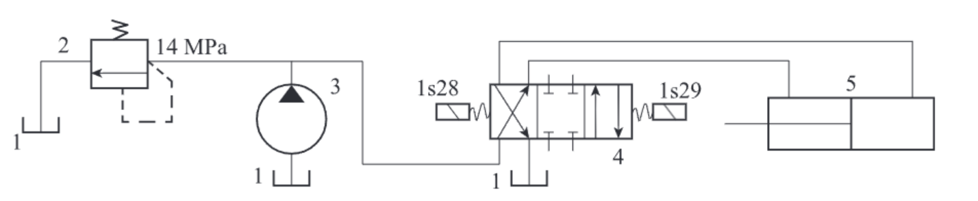 3表示液压泵;4表示电磁换向阀;5表示液压油缸。